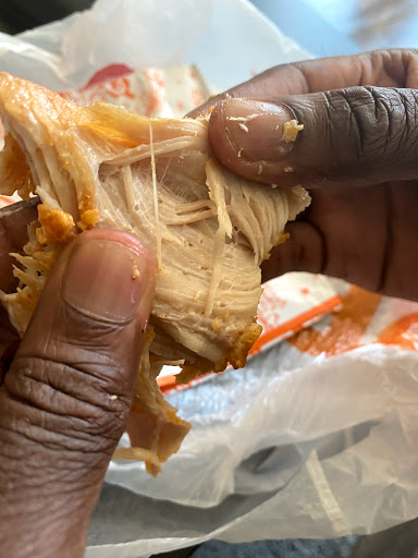 As Im writing this , Im feeling discomfort in my stomach from the food Id bought from this place and eaten. Im having a little heartburn also. I got a chicken breast and two legs. I ate the breast first by picking on the meat. However, as I was biting into the innermost meat of the legs it smelled a little bad. And the pieces were a little too soaked in oil as well. Maybe I should have gotten the tenders as I usually do but, I advise you to smell your foods first before taking them to your mouths.