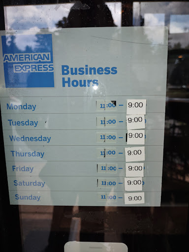 | Working: | 11AM–10PM 11AM–10PM 11AM–10PM 11AM–10PM 11AM–10:30PM 11AM–10:30PM 11AM–9:30PM |