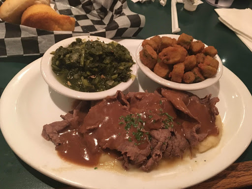 I wouldnt call this place BBQ as much as Id call it country cooking soul food. Youll see meatloaf, rotisserie chicken, and awesome vegetable sides. A sweet tea and complimentary bread makes this place feel like a slice of the south. Conveniently located in a small shopping center off Lenox RD, there is ample parking and a friendly staff. I have never been disappointed in the quality of food or service here. I highly recommend this restaraunt if youre looking for moms cooking. Closest thing Ive come to my moms cooking for sure!