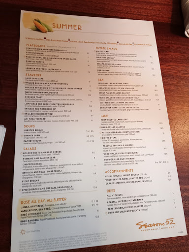 Some co-workers and I went to Seasons 52 during Buckhead Restaurant week. Our server was super-pissed when he learned that we wanted to order off the $15 menu, which makes sense since he was recommending $10 appetizers and $30 lunch entrees as the "fan favorites" at the restaurant. I kid you not, the server exclaimed "are you effing kidding me..." and walked off after we told him our plans. A different server came over a few minutes later and apologized for what I can only assume had happened: the original server walked into the managers office and quit on the spot. Anyways, the food was good although the burger has mushrooms built into it and they couldnt substitute it with the childrens patties (which are smaller) for some reason. Oh well... probably wont go back.