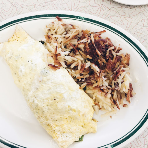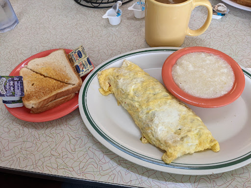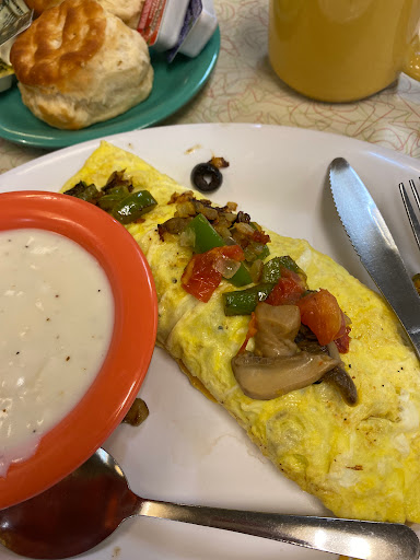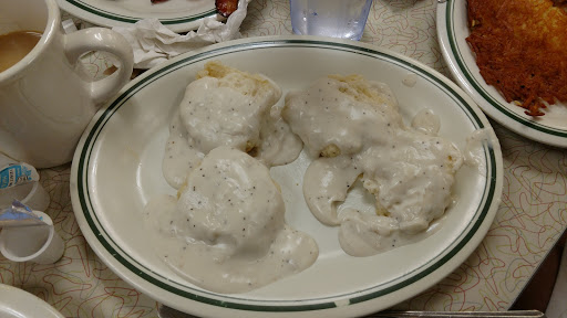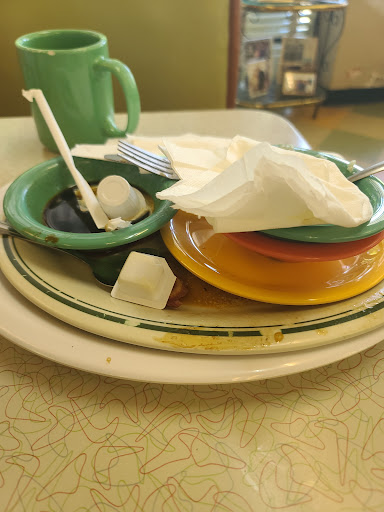 Let me try and just bullet the reasons why I disliked my experience here just to save time and to keep myself from feeling worse than I do now. 1.) Arrived and went in to go ask for a wait time since there was a line out the door and got ambushed by the hostess who told us to get in line out in the rain. 2.) Table we were directed to still had money on it, which I feel makes it very uncomfortable for the guest, but was forced to sit and get out of the way. 3.) EVERY piece of flatware had food residue on it from previous guests, cups/mugs included. 4.) What the menu offers is different from what the waitstaff will tell you is available. Our estimated 22 dollar bill became 29 when our waiter told us certain things were included when they were not. 5.) The food was mediocre. The pork chops were a grease sponge and the pancakes were flat and soggy. 6.) When trying to flag down our waitress to let her know all the money on the table was hers and we didnt need change, she spotted a twenty dollar bill and assumed that was all that we left, condescendingly pointing out the total which was clearly written on the slip. I assured her there were more bills there and turned over the check to reveal what she didnt take the time or consideration to investigate. When it comes time to tip, I always give people the benefit of the doubt and assume it might just be a bad day for the company or waitstaff, so I never deny them the money that makes up their livelihood. That being said, Ive never felt more cheated at a breakfast place. Especially ones with peeling wall paint and impatient, misinformative employees.