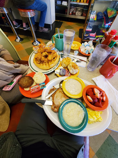 I was extremely underwhelmed and somewhat disappointed with this restaurant. Ive been looking forward to eating here for months now because of the high ratings and because I heard it was a great place for breakfast. I was super excited when I got the opportunity to go today. First, let me say the overall look of the place is like an old 1960s diner. It is definitely stuck in that era. Thats not a bad thing. I kind of liked that charm. Now, on to the food...Lets just say, I wonder if any of the people who gave this place a 4 or 5 stars, really tasted the food. Or maybe I got a different chef because the food was most definitely not a 4. At best a 3 because it was hot. However, I ordered the catfish strips with eggs, grits, and a pancake. None of which tasted seasoned at all. Now granted, it came to my table piping hot but it was nothing to sing about. I understand this place has been around for several decades and been visited by a number of celebrities but I wonder if they thought the food was good because I didnt see any reviews by them. My friend ordered the skillet fried chicken and the breading was extremely thick and floury. The dressing and green beans tasted like they came from a box and a can and the macaroni and cheese was very dry and they used shell noodles instead of macaroni noodles. The staff were extremely friendly and our server was very attentive. We only paid about $26 for our meals combined, plus I got coffee; cant beat that! All in all, I was not impressed and will probably not be back.