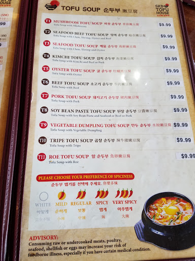 Ive driven by this place hundreds of times and finally decided to try the food. The restaurant is located in a small strip mall that has Kung FuTea on the corner. This is a small korean tofu house that has a large variety of soicy soups. They also serve marinated beef and short ribs. Pricrs range from $10 for yhe assorted tofu soups and go up to $18 - $20 for traditional korean entrees. As any other korean restaurant you recieve a variety of complimentary small dishes with your meal, salted fish, Kim chi, translucent noodles etc. The parking lot in the form till is small but they also have a larger lot in the back.