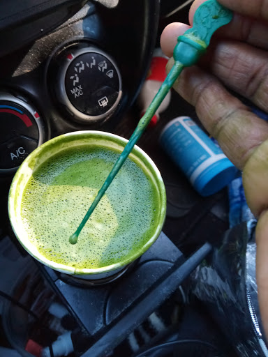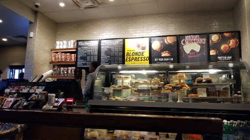 I asked the guy that was cleaning, because was the only one near the area I was, to pour out some coffee and he made a gesture as in, Im cleaning and can not help.. I dont know if hes the janitor or a starbucks employee but a young lady ended up helping me.. I assume his gloves are fixed to his hands but there was a pile of trash in the middle of the floor the entire time I was there.....