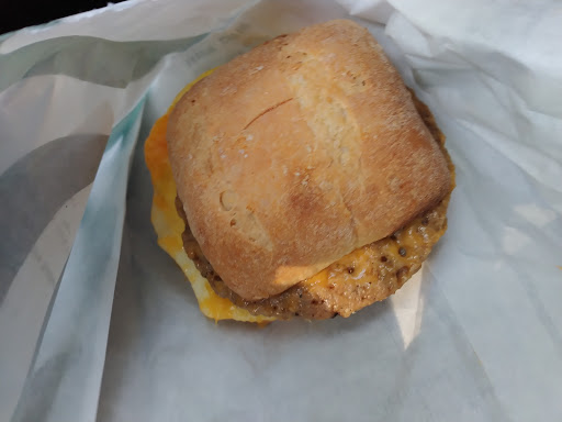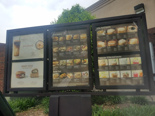 Quick services at the drive thru. The outside menu is OK & outdoor order speaker is fixed so there no need to make your order at the first window. If you cant find the drive thru it start on the back side of the store. The parking lot is small but if I need to park my car I can. The inside & outside sitting around stay clean & have a relaxing feel to it. Yes this Starbucks has WiFi. Inside of Starbucks the ordering process are not so quick you might have to wait to the side to wait on your order even if it something to drink. The staff work fast to get your order to you.