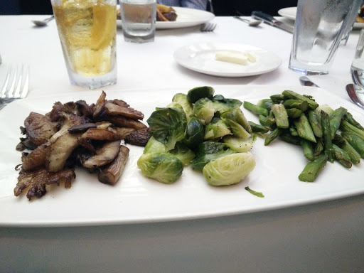 The food may have been decent...but the HORRIBLE service was so much, that I will gladly write this place off for good. Our server was beyond rude...it was insulting and embarrassing. We were treated as though we were not good enough to be there throughout the entire meal....in the meantime, the restaurant was filled with thugs who couldnt even bother to take off their flat-billed hats. If youre going to charge me $10 for a side of over-cooked asparagus, the least Id expect is an enforced dress code...a little class never hurt anyones business. Our waiters name was Jermaine....and knew nothing about the wine menu, or at least he sure was good at pretending to be clueless. He rushed us through the ordering process. Everything that came out of his mouth was very short and was accompanied by an awful attitude. And the cherry on top....he came over to the crumb the table and swept all the crumbs into my friends lap and caused a kink in the table cloth...when that happened he stood there rolling his eyes until my friend had to straighten out the cloth for him to continue throwing crumbs in his lap. I almost lost it. Never returning to that over-rated restaurant again. There are plenty of other MUCH MUCH better steakhouses/fine dining options in Buckhead.