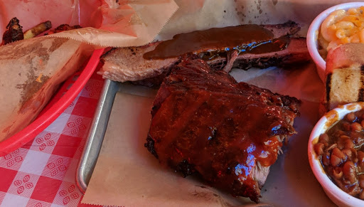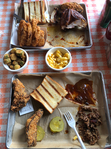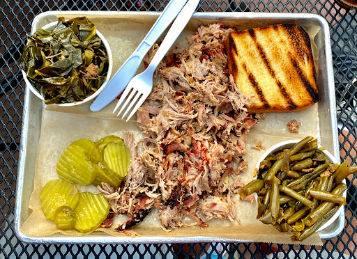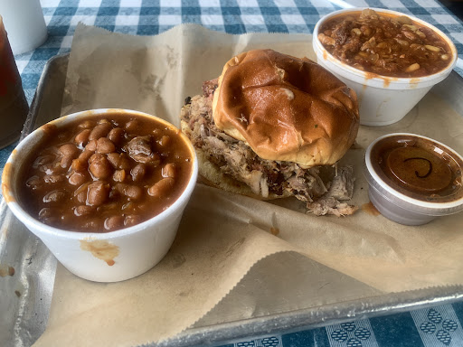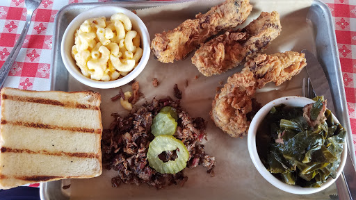Solid, tasty BBQ - probably the best in this area. I love their smoked chicken and dry ribs and tend to order something along those lines. This chicken is perfectly seasoned and smoked! The flavor is really good and really does not need sauce. But I like sauce so I still use it. Their house sauce is nice but the Carolina is very good and tangy if you like a mustardy base. Mac and cheese is some of the best Ive had at any BBQ joint - not overly greasy. Baked beans go well with the mac and cheese. Ive had their greens, not bad but not great. The day I had them, they were a bit too salty. What I LOVE about them is the tacos. You can get rub tacos. RIB TACOS. Pulled rib meat and cole slaw. Try it and fall in love.
