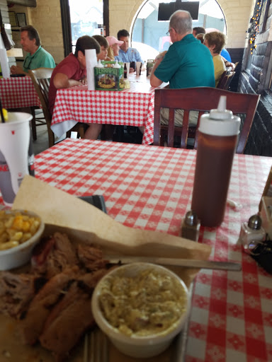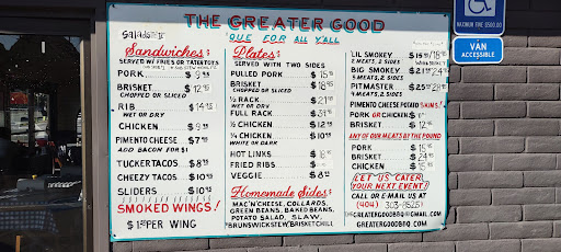 They should rename it "The Greater Bad BBQ ". I got food poisoning!!! The best thing there is the sauces. The pulled smoked pork had charred parts but no smokey taste. I dont know what kind of wood they use but it is wrong. The portions were not consistent but, even though I was served a small portion, it was half raw un-rendered fat. I ate it all for I was very hungery and I dont want to make a scene and send it back but, I think that was my big mistake. The mac and cheese was horrible. It had some plain cheddar on it but if you got a bite without any it just tasted like plain noodles with grease and salt. This was must of the bites for there was very little cheese. The Brunswick stew was ok but bland. You definitely needed to put some sauce in it to give it flavor. They also thin it out with potatoes which were undercooked also. I wont ever go back!!!