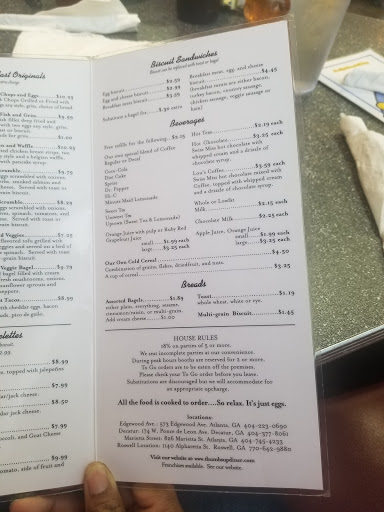 I have only eating at the Edgewood location and fell in love with the Yukon omelet....I didnt think visiting the east point thumbs up would be such a significant change and I regret my daughter chose it for my birthday brunch :( are both was near kitchen and we could hear workers in back cursing about order changes and both are omelettes were burnt dry and missing signigture ingredients I will try and visit my original located to see if they still have that delicious taste and excellent customer service that I remember :(