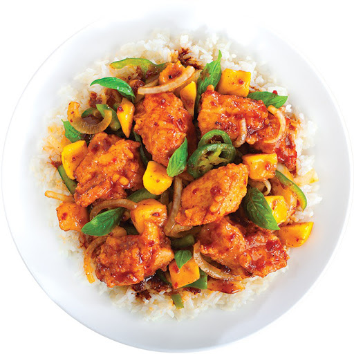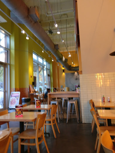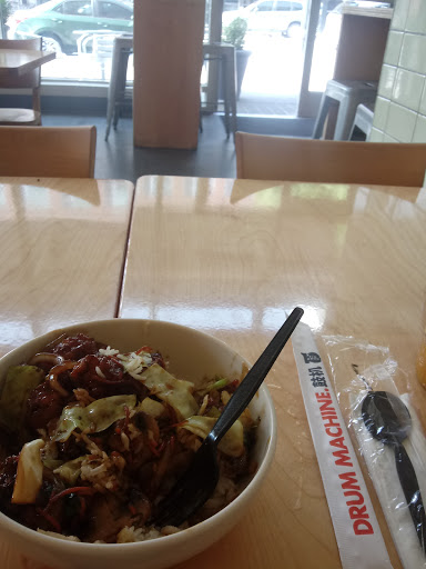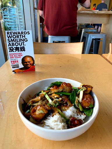 Interior design was about the only thing good about this place. Interior looks cool and all, but food is terrible. I ordered sesame chicken, and the rice was hard as if it was refrigerated for a month and microwaved, which it probably was. Not only the sauce was awfully sweet, the whole bowl was swimming in it. Sesame chicken is supposed to be sweet, but this sauce was way too sweet, and with hard rice, I couldnt even finish my plate. Their food is overpriced for what looks like a microwaved TV dinner.