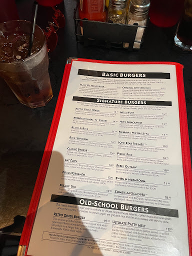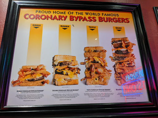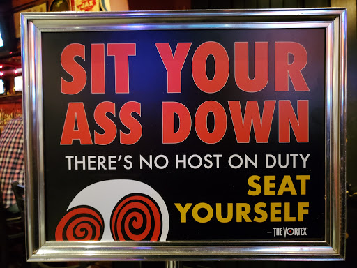 The Vortex really is one of those places you HAVE to go to if you visit or live in Atlanta. This was until recently the best burger place Id been to, and it remains on my top 5. Having been here a good number of times, Ive tried a lot of the food here. The Vortex has a large variety of burgers, among other things, and theyre all as flavorful as they are unhealthy, ha! Actually, come to think of it, theyre not as unhealthy as youd think, which I saw the first time I had the famed Double [Coronary] Bypass burger. It consists of a thick 1 lb. sirloin patty, 2 fried eggs, 6 slices of American cheese, and 8 slices of bacon. And to top it all off, they place it all in between 2 grilled cheese sandwiches. As I was saying though, its not that horrible, since when I had this monster of a burger, there was no grease overflowing from the meat, only a rather small amount on the bacon, which can be expected. It was a bit smaller than I thought, but still huge and tasty as heck. Besides that, Ive also has a couple other burgers, like the Cajun burger and the Black and Blue burger, which also dont disappoint. If everything that tastes oh so good about the Vortex wasnt horrible for you, Id definitely be here EVERY week! This place gets a 4 from me though, not because of the food, but because of the entry staff. Twice now Ive forgotten my wallet, and they gave me attitude as I was trying to get in instead of politely and simply telling me I couldnt go in.