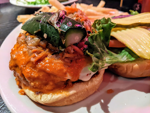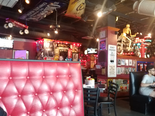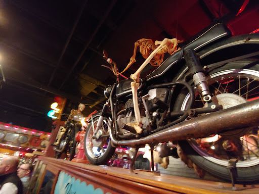 Vortex makes a wide range of awesome, meaty burgers. If youre looking for a lot of dead cow topped with the basics or various combinations of great toppings, this is the place. I have yet to attempt any of the coronary bypass burgers though Ive tried many of their signature burgers. All their burgers come with a good deal of fries or tater tots and I find the quality of their burgers to match or exceed any other burger joint in Atlanta. If youre looking for a good, simple burger, you can find it at Vortex though Id recommend trying a signature burger. You can find good quality teriyaki, buffalo n bleu, blackened, mushroom n swiss, etc., at Vortex. Ive found that they cook burgers to the right doneness every time. My personal favorite is the Hells Burger with its habanero relish, pepper jack, spicy sauce, and roasted jalapeño on top. Great choice. I think itll be hard not be satisfied after you come here. You should have already realized that this has a biker-goth feel to it. Skulls and motorbikes everywhere. Pictures of scantily clad women. Cigarette smoke. And the only-over-18 admittance. Thats important if you try to bring any teens/children. I think its a fun, unique atmosphere that contrasts with the middle of midtown. Your grandmother may not enjoy the experience.