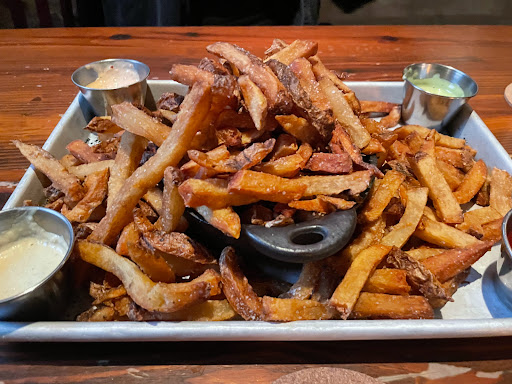 This place offers easy valet parking, and is just slightly off three beaten and noisy 5 Points. Outside seating available but the bar is cool too. Cocktails are good and unique, not overpriced either. Beer selection is Food especially for those looking for small batch brews, havent tried them all but the few Ive had are decent, nothing to rave about. Food selection is meh, but by far better than any typical bar food you might find in the area. Heavy, greasy, small portions, and over priced---- however three food IS good and worth trying. Service is hit or miss, not a place I think any customer rapport building will happen. Order, eat, get out. But hey its a business.