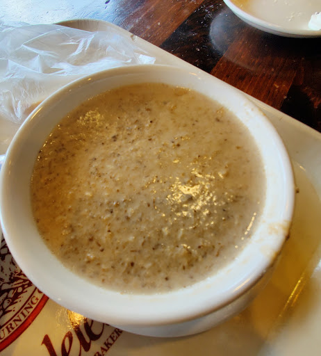 Food was good, but flow is confusing and staff were not that friendly. One thing that can help is a chalkboard menu. Staff did their job, but didnt make me feel welcome. Soup was great. Sandwich above average, salad below average. Seat was warm and comfortable