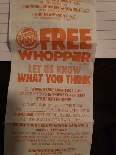 This pretty lengthy, but I hope it goes viral. I stopped here on my lunch break with coupons trying to get a cheap meal. I went on store and noticed 6 Cobb County Officer having lunch, it didnt cross my mind their purpose. So I proceeded to the register and a man was in front of me, I over heard his order and offered him a coupon. He said to me, no one ever done that before, and was very grateful. He then made sure I was good with my order. I didnt accept anything from him trying help save him a dollar. Then when it was my turn, I couldnt figure out how to buy a meal with $3.37 in my pocket. Christy, the wonderful cashier started going thru the coupons with me. We couldnt get it to my budget. I told Christy to hold my order and went to my car. I started digging for any loss change on my floor of my car, the bottom of my purse, etc; I was still coming up short. Then a officer came out of store and informed me that I needed to pick up my food. I, with a blank look on my face, questioned why? He said, "I just paid for your meal." This officer gave me a hug with tears in my eyes and said, "Enjoy your lunch." He got on his motorcycle and left. It was about 6 officers having lunch, and 5 of them left before I could order. However, I truly believe this was GOD ordain. He was the last to leave, and not knowing I was in my car checking my bank account and saw I was a -$87.00 in my account and I couldnt get any more change out of my purse, and I left my lunch at home; Officer paid for my lunch. This is a Blessed Burger King,and I pray that the officer will continue to have Divine Favor and Blessings upon him and his family.