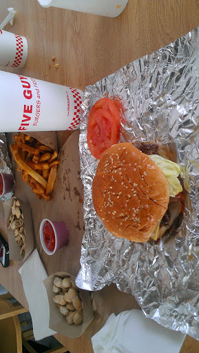 Its a little rough on the digestive system later, but Five Guys Burgers are absolutely DELICIOUS! You can put all the toppings you want on, and I definitely encourage the cajun fries. HOWEVER--If you have a Peanut Allergy, please beware. There are peanuts all over the restaurant as a free snack for customers waiting on their food.