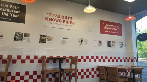 For a Five Guys this is a good location and place. Good quality and quickly made. THey order, cook, and deliver quality Five Guys food. Prices have gone up, and quantities have gone down so Five Guys is not the bang for the buck it used to be. That said, its still good eats and great for a better than fast food quick bite while out running errands and doing your daily tasks.