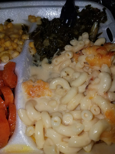 I really like Soul Food, and am always eager to trying new places. Needless to say, I was not entirely pleased with this place. It took my awhile to find it because my GPS took me to a completely different location. The restaurant could definitely use some cleaning. I also noticed that the guy that was serving the food was NOT wearing gloves. What was even more disturbing was the fact that he walked off after making a plate, left outside of the restaurant for a minute or so, came back in and didnt wash his hands. He just squirted on some hand sanitizer and started serving up the plates again. Now as far as the food, Ive had better. Im not sure if the meals of the day change everyday, but there was a small selection of food. I ended up getting the turkey wings with macaroni and cheese and collars greens. The wings were warm by the time I got back to my girlfriends house (she lives less than 10 minutes away). The collard greens tasted a little off, but other than that the just needed a little salt. Same for the mac and cheese. Since there arent too many other Soul Food places in the area, this would have to do. However, Ive definitely had much better. I will say that the lady at the cash register was extremely nice (as all the staff I met were) and told me that if I had any problems with the food to come back. I didnt have any problems really, it all just couldve been made better.