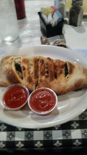 Been here before on several occasions when we lived in the area. Havent been here in about a year and my fiancé surprised me with a trip here for my birthday. The overall service was poor especially for it to be a weeknight and virtually no other customers to wait on. The waitress didnt greet us, she only said "2" as in number of guests. Then as we were seated she didnt even introduce herself and proceeded to aggressively prepare the oil mixture for the bread basket. We felt rushed the first time we were asked to place an order and then were waiting for quite sometime for our server to finally return, again it was just us and one other table who were already being waited on. We finally got our food and bread, the chicken Alfredo soup was decent at best, the calzone didnt taste fresh, the bread was just ok and my water was disgusting, it tasted like Alka-seltzer. When it was time to get the bill we received a very abrupt parting of "Here you go", and she just walked away. No one else told us have a good night or anything. We WILL NOT BE GOING BACK!