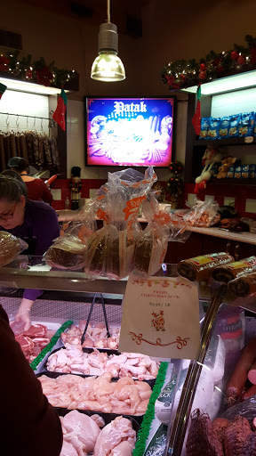 I almost hate to mention what a "jewel" this shop is. Ive been twice, The first time I bought cooked brats made of beef and pork, a light almost blond color. They were fantastic cooked with some sauerkraut I had rinsed and cooked in white wine. The other brat I purchased was an uncooked beef and pork one which I liked even better. I bought a 3.5 pound smoked Boston butt for $11 which smells wonderful but I havent tried yet, a smoked pig knuckle that had just come out of their smoker, and when I took a bite, I thought it was the best meat I had ever tasted. I also got a piece of Bohemian salami that was very "clean" tasting, probably somewhat spicy for younger palates, the best Ive ever had outside of Bloomsburg, PA. I tried to go back yesterday which was the Friday before the 4th of July weekend, and couldnt get into the parking lot easily it was so crowded, so I vowed to go bake today! One last comment and then Ill shut up. I hadnt eaten all day and as I was checking out I spied one lonely cannoli. I see what people see in a New York City cannoli now, I almost wrecked on the way home I was so ecstatic! Anyway, Ive said too much and now Im probably going to be standing in line behind some of you!