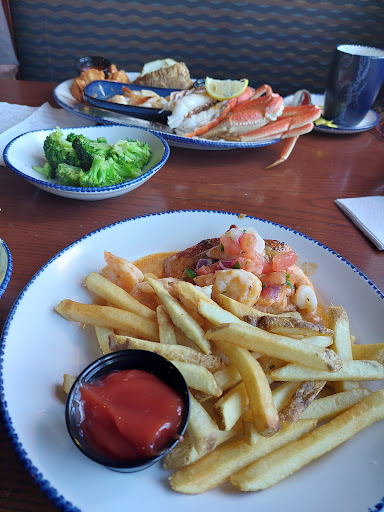 Came for birthday dinner. I ordered a pick two combination, grilled shrimp and grilled scallops with roast gold potatoes. Got six puny shrimp on a skewer and four scallops, one which had a diameter not much bigger than a dime. Got six Yukon Gold potatoes, two which were about the size of a nickel, and they were so heavily peppered I could only eat one. Husband was so embarrassed he gave me some of his shrimp Alfredo. Icky gluey sauce. Thanks for nothing.