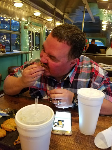 This was our first time eating at the Burger Bus. It is definitely a unique experience. We sat at the high bar inside the bus and had a great view if the main road and seen several classic cars go by. The air conditioning vent in the floor at my seat was a very welcome treat! Our server was quick, nice, and never left us wondering where she went. My Wife ordered 1386 burger and she said it was one of the best burgers she has had. I ordered the Dads on Death Row burger and liked it very much. I thought the fried grits could have used some flavor but the rest of the ingredients tasted great. We will be back!