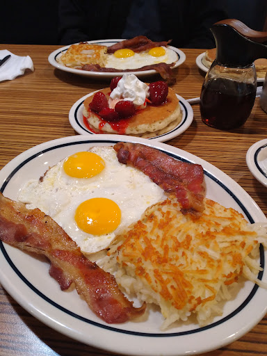 Wish I could give a half a star ! Thursday night 8:45 .... maybe 8 tables all waiting on food. Employees literally walking around in a daze . Took 15 mins to be acknowledged after getting a booth. Never got cream for my coffee . Brought out turkey bacon !! Who the heck wants turkey bacon ??? I was told they were running low on pork bacon . Its IHOP .... isnt bacon a staple . My son finished his food before my daughter n I got our food . Never even got our pancakes . We finally get our check and the waitress says "I took the turkey bacon off " wth.???? Uhhh the bill is the same . Another rant ... $2.34 for a dang cup of watery coffee . As a single mother that works two jobs , who just wanted to take her kids out for dinner . I left with an ulcer and a 36 dollar check . Let me reiterate a family dinner, not sit and watch my son eat alone dinner . Excuse of being "new" is total BS . Its sad , we get awesome restaurants and the same piss poor service comes with this area .