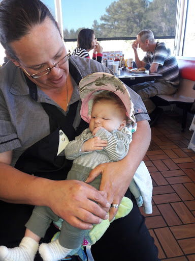 Great Waffle House food, but the music is too loud.