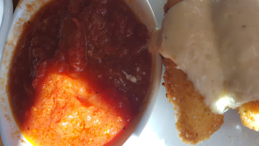 The combination of a moody server, nasty bathrooms, super grease chicken and shrimp carbonara and chicken alfredo got us sick and throw up in their bathroom. Their soups were good. Dont order the minestrone unless you like ice cold soups.