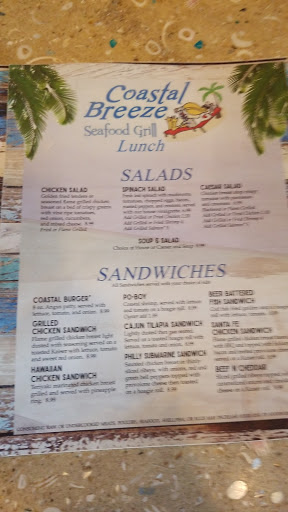 Just had lunch at Coastal Breeze. I have to say it was an all around terrible experience. Stared out bad by having to flag down an employee to seat us. Then it went down hill from there. Ordered from the lunch menu which is usually pretty good value. The seafood bake, which I have had several times literally stunk. Tasted bad as well. The seafood quesadilla was burnt. The only thing that was good was the salad. Then, when looking at the bill, everything was overcharged. Not the lunch menu prices. We also were charged for two seafood bakes while only getting one. After this was brought to their attention they adjusted the bill. Ive eaten there dozens of times the last three years, and at first it wasnt great. They eventually seemed to work out the bugs and turned it around. But after today it appears they have taken two steps back. I will give them another try, but only one. If its bad again we will find another place to get our seafood.