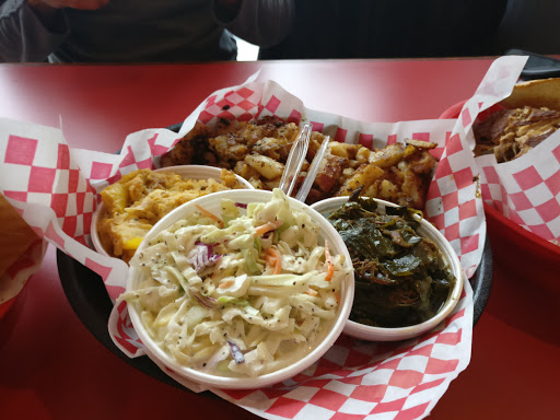 We stumbled upon this place this past weekend. SERVICE: All of the staff were extremely knowledgable about their menu. They asked us if it was our first time, explained how everything worked, and gave awesome recommendations. FOOD: awesome. I had the pulled pork plate with collard greens and the broccoli patty. The pork was very good! They dont put sauce on it, they have different sauces and you choose what and how much you want. The collard greens were some of the best i have ever had!!! i will definitly order them again. For dessert, we had the homemade banana pudding--i am a HUGE banana pudding person and i am very critical when it comes to how people make it. I can tell you honestly, i didnt like it. It was water down and wasnt very southern in my opinion. However, where they lacked in bana pudding, they won back in everything else!!! OH! and if you like spicy there is a sauce called "Stupid"--and i tell you what, it is. My husband LOVES spicy but he was about to order some milk to get the taste back in his mouth! Good luck if you try that one! I would tell everyone i know to eat here!!! However, I would warn them about the banana pudding!