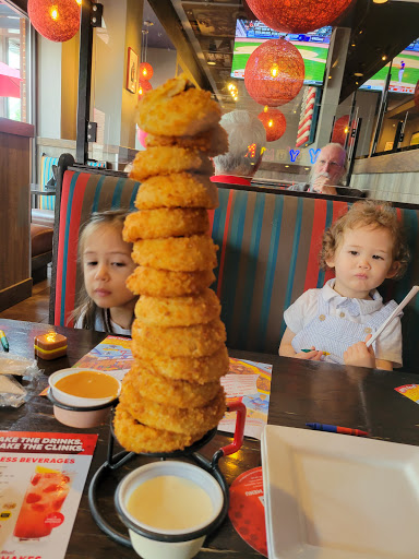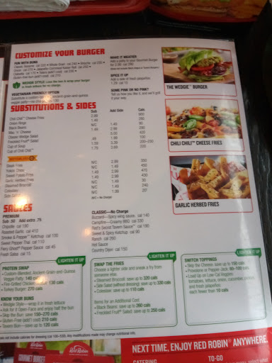 I have never been to a Red Robins with great service. I love the food but the service keeps me from coming back more frequently. To be honest o Charles bacon cheese burger is just as good. However no one beats them on a specialty burgers. Both take out and in house service are all bad. To pick your food up at the bar takes like 10 to 20 longer then you Were told it would take. So you stand there waiting and they always mess up. In house service the wait staff is slow and boarder line incompetent. For a good specialty burger you have to choose the lesser of the Two evils.