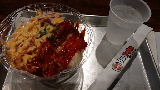 TopPoke is the perfect fusion of Korean and Poke (Hawaiian fish salad). From the Poke bowl to Korean fried chicken, rice balls or sushi you will find something youll like. I suggest you start with the bowl. The staff will help you pick the perfect mix by explaining all the options to add to your poke bowl. Top it all off with the Mango Ice Tea. Try it, I am sure youll gi back.