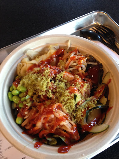 Went in on a Sunday after they had been open since the previous Thursday. Place was extremely clean and well set-up. Food was yummy and tasted fresh. The owner (one of two brothers that were co-owners) helped us behind the counter and explained how the menu worked, although we had been to a different poke restaurant before so we were familiar. My gf and I both had bowls with steamed rice and spicy tuna and salmon (different toppings/fillings) and enjoyed both bowls. The owners also brought us out different behind the counter made to order foods to try. We tried the rice cakes/fish cakes and a sushi roll that was very good. Well be back for fresh and filling food in no time. For anyone unfamiliar with the idea of poke, its fairly easy to describe it as korean/japanese Moes/chipotle. You get your choice of protein/rice/toppings/sauce/etc and can build your own bowl that ends up being like an open sushi of sorts. Really yummy.