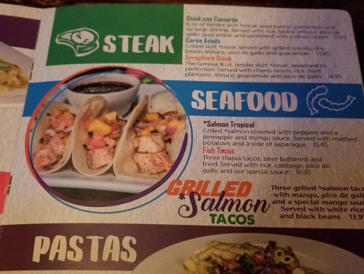 Fish tacos, fried and a flour wrap, Mango margarita, chips and salsa. Tacos were great, although I would have like a sweet salsa on them. Margarita was excellent. Beans and rice were very good. The service was great, I had several members of the staff come by and ask if I needed anything. Server was friendly and engaging. Great experience!! I will definitely come back!