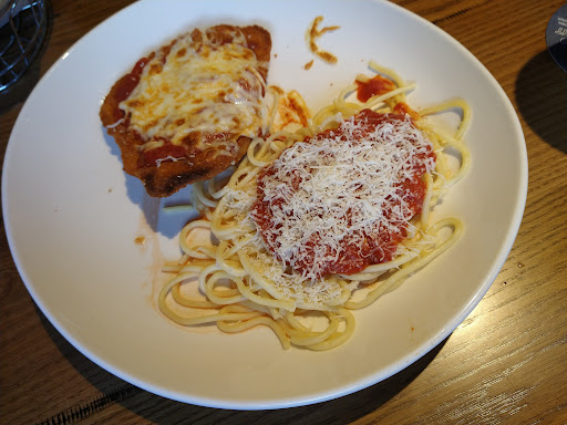 Our server was really good and they seem to help each other with tables. On the downside, it feels crowded (tables too close to each other). The food quality, preparation, and atmosphere, didnt seem to justify the price. My wife had to wait for about 10 minutes to change our infants diaper because the hostess was in the restroom texting on her phone. I felt bad for our server who acted very professional, clean uniform, and was all smiles... he was trying to recommend wine in a place that felt like a cafeteria. A server that good should be in Provinos. Im only going back to Olive Garden if I have another gift card.