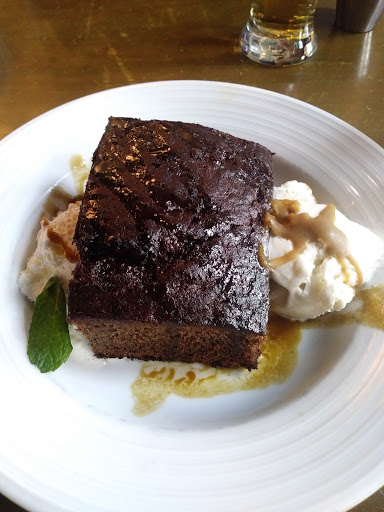 When you live way OTP, the choices for dining that are not a large chain or a bar are a bit limited. RCB is a wonderful exception. Located off of Riverstone Parkway, its very convenient. We dined there on a Monday evening and were pleasantly surprised to see the restaurant 90% full at 6:45. We were seated right away and greeted by Chris, our friendly and accommodating server. We tried the Fried Pickle appetizer and were happy with the dish. The breading was crisp and the pickles had a nice bite. Dipping sauce was OK - a horseradish cream I believe. Personal taste would have preferred something a bit more spicy. They have a full bar and the drinks were generous and well - priced @ $7-$8.25 with the $8 one being Ketel One. (Got a chuckle from the menu where its spelled "Ketel One".) For mains we had a Portobello burger and a Blackened Grouper Sandwich, both with fries. They were well prepared and served hot, not warm; yknow the way food is supposed to be. We were quite satisfied after that but they offered a free dessert as it was the first time dining there. The chocolate brownie sundae was pretty sinful and enjoyed by both of us. The brownie is served warm and is gooey in the best possible way. Definitely going back.
