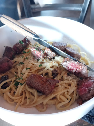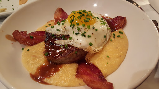 Mediocre and over priced for what it is. My wife and I decided to try a new place out for date night, and we had always been curious about B&B. Our issues started as soon as we were sat... out of a draft beer my wife ordered. Not that big of a deal. she switched to a similar brew and we moved on to appetizers. Lamb Meatballs, which were cold, bland, and a very small portion of 3. Next were entrees, my wife absolutely loved the stuffed salmon, but my filet medallions which were ordered "medium" came out rare. Not just rare, but cold center rare. Our server took the plate back to the kitchen, and returned with it 3 minutes later now over cooked. The manager popped by and apologized, explaining the kitchen was horribly busy tonight. Saturday at 6, no wait, and the restaurant is only half full... and the kitchen is "horribly busy"??? Maybe we just had a round of bad luck, but we wont be back. When pricing for entrees is in the $28 range, an expectation is set. Two filet medallions with fries, which the kitchen cant cook to temp is not my expectation.