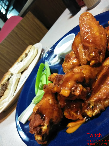 Really great wings with about 20 sauces to choose from. I also got a calzone that was really good.