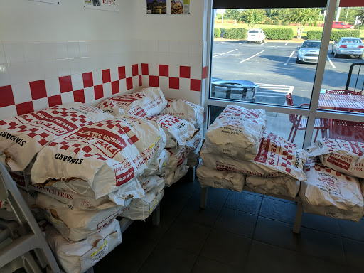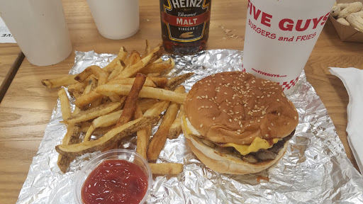 Been to many five guys before. I went to this one yesterday for the first time and everything was good except the fries. The fries were like chewing bubble gum. They were slow when i went only one other person there so whats the excuse?