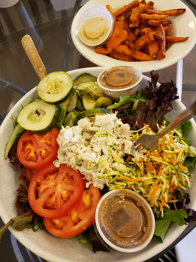 The food is healthy and delicious and there are a variety of food options for patrons: salmon, grilled chicken, salads, soups, wraps, sandwiches, combos, and of course, Fish Taco Friday. I love that the salads are made with dark and mixed greens (not iceberg lettuce) and can be specialized to remove allergens and provide dressing on the side. The sweet potato fries are my favorite. Its a yummy and positive experience!