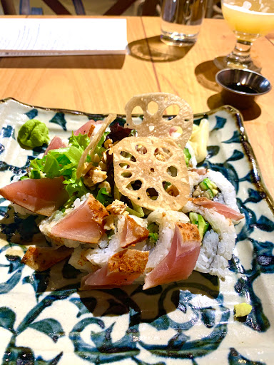 Went for dinner tonight with friends. We had reservations for 6:30, but it wasnt crowded when we arrived; however, it was crowded when we left around 8:30. Still no wait (Cinco de mayo, though!). The service, food, and beer were all exceptional. This is a gem in Chamblee! Good selection of craft beer, their own and other locals. Tried their pale ale and porter. Both solid. Started with sushi corndog for an appetizer, chicken nuggets, and grilled peppers. All delicious. I had the vegan and kamakazi sushi rolls for dinner and husband had the ramen. We had the special fig cheesecake for dessert. This place is good. We will definitely be back!