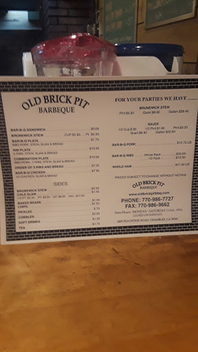 Old Brick Pit is good BBQ. This is one of the few true old GA BBQ places left anywhere. The pork is cooked well with perfect amount of smoke. The sauce is a terrific vingegary/peppery mixture. Brunswick stew is good and contains only the stuff that it should. Sandwiches are small but that is they have always been made in GA BBQ places - like on old Colonial hamburger buns - because that is what was available when this sandwich was perfected.