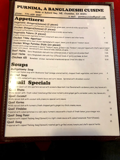 Purnima is awesome!! From the food to the service, it did not disappoint. I went with a party of 10 that consisted of vegetarians, picky eaters and even a 7 year old and not one single person walked away without saying how good everything was. We ordered 10 different dishes and each one was great! Warning if you want spicy, you will get burn your mouth up spicy! You want flavorful, you will get lots of wonderful flavors. You want great service, you will get a wait staff that will talk to you about the dishes and make sure you are enjoying your meal. They have only bottled water and will not hesitate to bring you another bottle when you are done. The portions are a decent size to share and the flavors pack a punch. I went back to my old time favorite of Chicken Korma and I can say it was the best I have had in Atlanta. We had regular Naan, Garlic Naan, and the mixed Naan and it was all soft and flavorful. We had Shaag Ponir, Chicken Tandoori, Shrimp, Tandoori, Chicken Masala and everything was hot and great! They ask for your spicy level and trust me, order mild because their spicy is the real deal! I went for a birthday dinner and they were nice enough to offer a gift card for my next visit which in my book is top notch. I definitely will be back to use it!! Their main business is delivery and they have different tiers based on how far they go. They go up to 13 miles away for an $8 Charge. and within 4 miles is free.