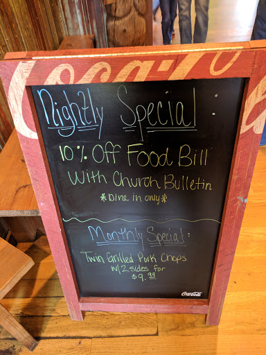 The atmosphere was pleasant, by a crackling fire, the waitress was delightful......the food was inedible. I ordered the catfish filets,and they were fair. The sides, sweet potato fries (drenched in sugar and cinnamon) and canned creamed corn were awful. My husband ordered the vegetable plate, he ate nothing. This is our first time eating there since the fire...it will be our last. We visited with several people at the restaurant, no one was local and no one had ever been there before. I hope they read these reviews and improve their product.
