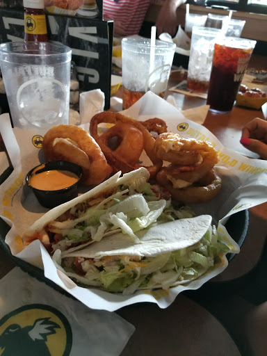 WORST BWW THAT I HAVE EVER BEEN TO. WAITRESS CANT ADD TO GET MY ORDER RIGHT. FOOD COMES OUT ON ONE TRAY AND WAS NOT GIVEN EXTRA BOATS FOR OUR WINGS SO ALL THREE OF US HAS TO REACH IN EACH OTHERS FOOD. HAS TO ASK FOR AN EXTRA BOAT FOR OUR BONES AND THAT WAS LIKE PULLING TEETH. TOOK TWENTY MINUTES FOR A REFILL. THE ONLY PERSON I LIKED WAS THE HOSTESS. EVEN THE MANAGER DIDNT CARE WHEN WE TOLD HIM ABOUT OUR HORRIBLE SERVICE.