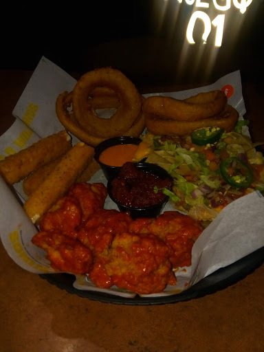 The only good thing about this place is the abundance of TVs and they offer PPV fights for free. But why go here to watch the PPV fights if its so loud and crowded you cant hear the people at your table much less the television. Everybody is LITERALLY yelling on fight nights. Either your yelling just to talk to people at your table or your another drunk person there just screaming at the TV and other people. I guess if you want to feel like your in a stereotypical European pub with loud drunk people that root for UFC and boxing instead of soccer on the telly this is your spot. The food taste like chain food. Just something to eat while you drink. If you do go here when there isnt a fight on TV then the experience tends to be better. People act evolved. Like a regular sports bar restaurant then. But with so many other options in this area, why? The burgers across the street at Red Robin or Five Guys is better and there are so many wing joints here that are better also.
