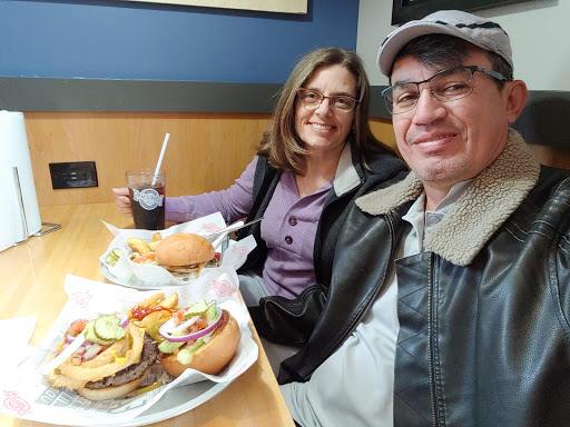 The food is good but it takes a little bit long to get it. You get to dress your own burgers. Also the food is a little pricey, but coupons are sent out from time to time. Place is really clean and they have a neat drink machine. One nice thing, the booths have a place to plug in a laptop and charge your phone, etc.