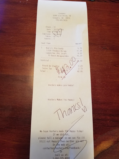 Dissatisfied Loyal Customer My husband and I order from Hooters at least every other Friday. We love their lemon pepper wings and curly fries! We placed an order recently over the phone at the Conyers, Georgia location. Understanding that the background can be extremely noisy, it is a bar for heaven’s sake. I placed the order on line and the person that took the order repeated the order back to me before hanging up the phone. When my husband arrived to the Conyers location the whole order was incorrect! The Manager debated with my husband for over10 minutes insisting that we ordered parmesan garlic wings, my husband explained to the manager that he was sitting in front of me when the order was placed and that I never said parmesan garlic wings. I have worked in sales for over 10 years and I have always been trained that customers are always, always, always right! Even if the customer is incorrect, manager of all staff members should never debate with the customer, especially in front of their staff members. It sets a bad example for the business and staff members. It’s also Impertinent and humiliating on the owner’s behalf. I would love to pay my upper management team members to disagree/argue with my most valued customers, I’m almost positive that this will increase my sales through-out my region. A business trusts that they are hiring competent employees to do their jobs and oversee the day-to-day business operations, especially the manager’s that are paid an astronomical amount to run their business. We have visited this location on several occasions and there seems to always be an issue with management, it appears that the turnover rates are extremely high when it comes to management, the service is slow, and items that are listed on the menu are never in stock. It appears that whoever is over the hiring for this region continues to hire incompetent staff members. Long story short my husband had to wait 30 minutes for our order (which defeats the whole purpose of placing an order over the phone). I do not plan to continue patronizing a business that is uncivil to their customers. Sincerely, Dissatisfied Loyal Customer