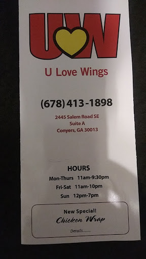 Pretty decent, local wing spot. Definitely my go-to since its so close to my home. The wings are rather small, like many of the wing places in the metro area, however its tasty and you can tell some of the sauces are homemade with their own personal flair and flavor--which I like. Ive had better, but U Love Wings hardly ever disappoints.